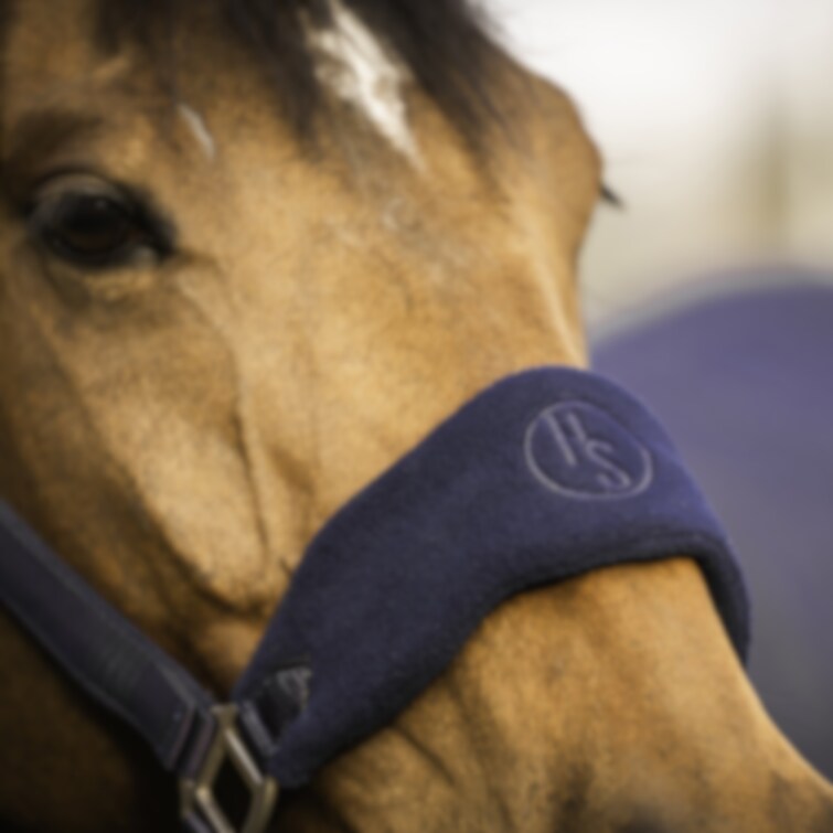 Slitstark mjuk grimma med tryckfördelande fleece. Fleecepaddings med extra stoppning och tryckfördelande egenskaper som ger hästen extra komfort. Justerbar för optimal passform och designad med elegant HS brody på nosen.