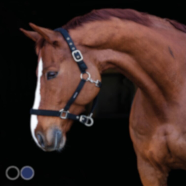 En rejäl grimma i nylon med mjuk frottéfodring - dessutom i stort urval av storlekar. Grimman är ställbar i både nos- och nackrem. Stål med beläggning av nickel.