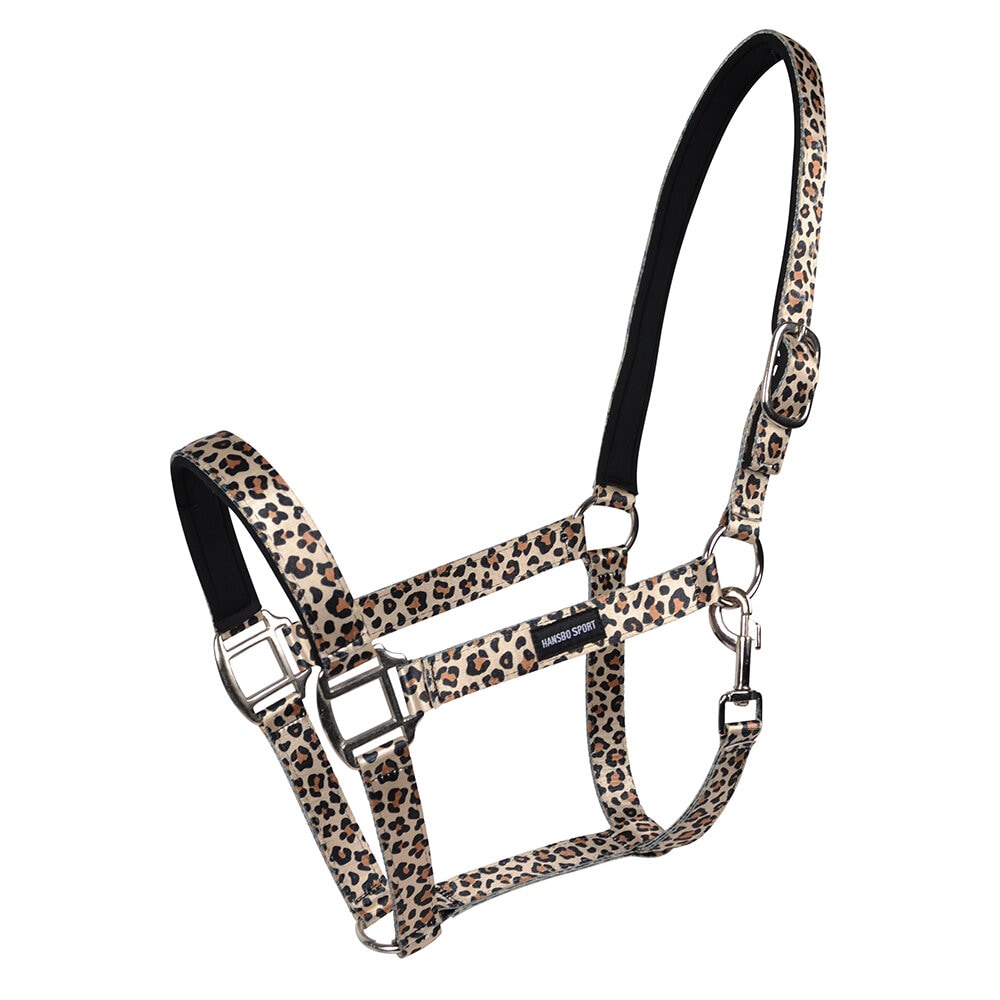 Svart lyxig grimma i textil med mjuka detaljer i läder. Grimman har vadderat nos- och nackstycke. Metallbeslagen är nickelfria.