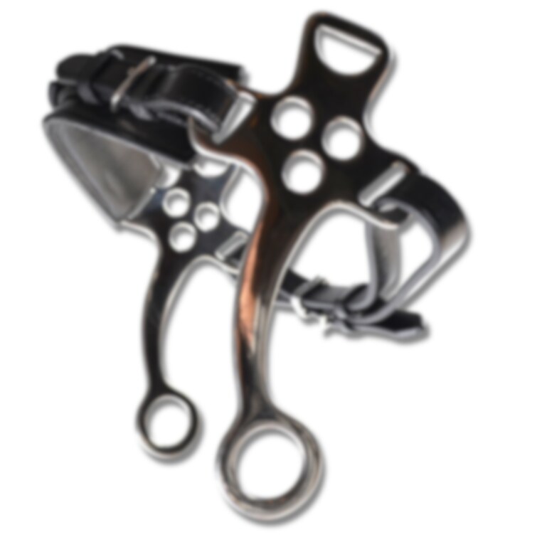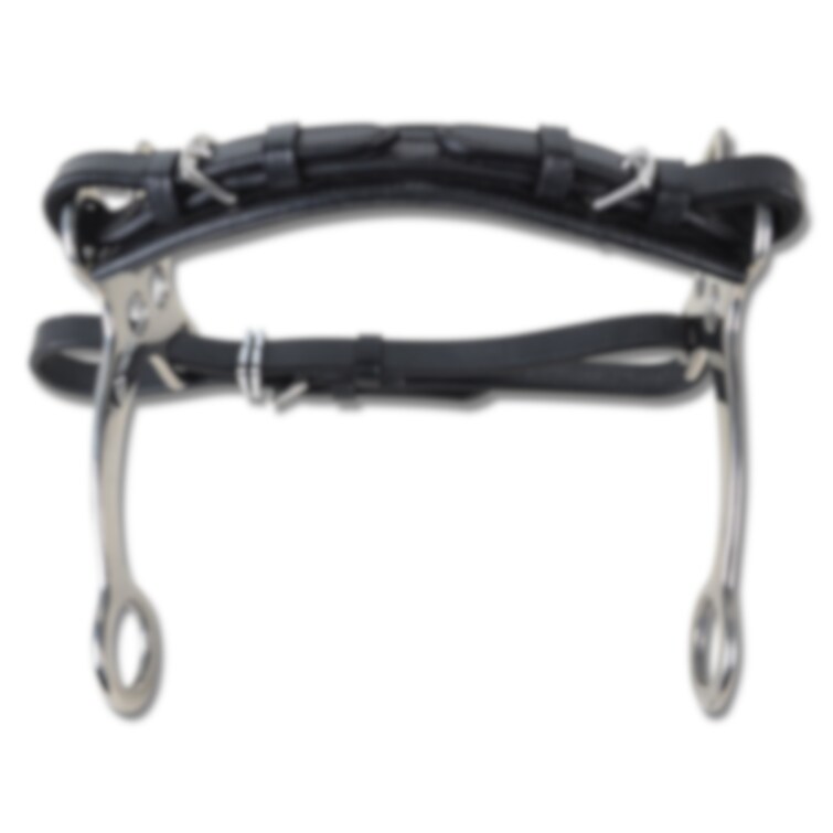 Med korta skänklar samt läderklätt. Hackamore verkar mycket kraftigt på hästens nosrygg och bör endast användas av erfarna ryttare.Det har stor hävstångseffekt. Används på mycket skarpa hästar eller då hästen inte kan ha bett i munnen. Längd på skänkel full 18.5 cm.