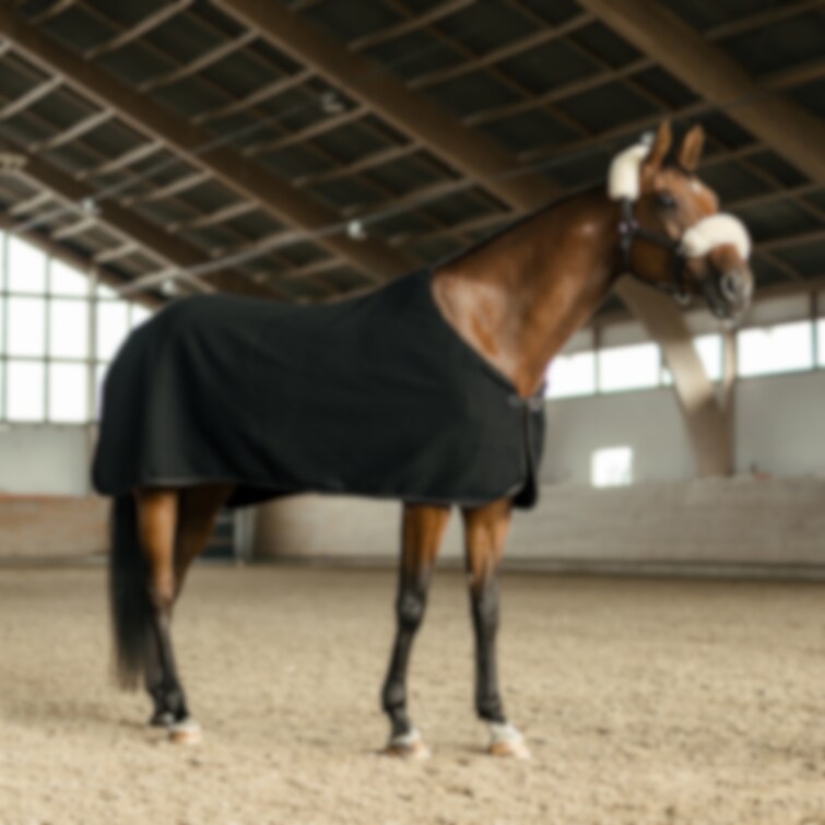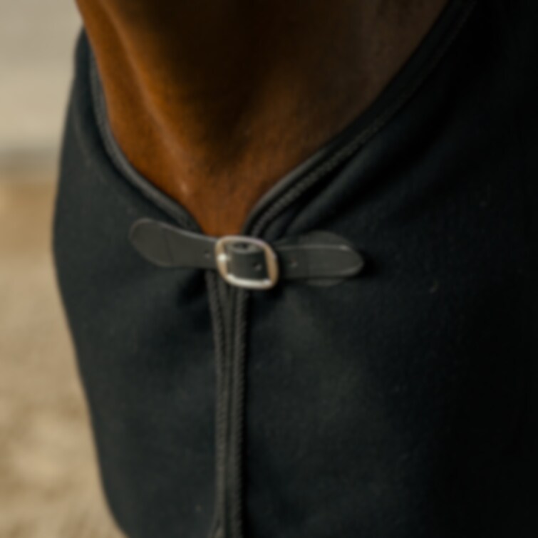 Svart hästtäcke tillverkad i en kraftig ullblanding som håller hästen både varm och torr. Täcket är designat med en dekorativ matchande passpoal. Avtagbara kryssgjordar samt vacker frontknäppning i läder. Optimalt för användning under framridning, efter träning eller som transporttäcke. Plats för egen brodyr. 80% ull, 20% övriga textilfibrer.