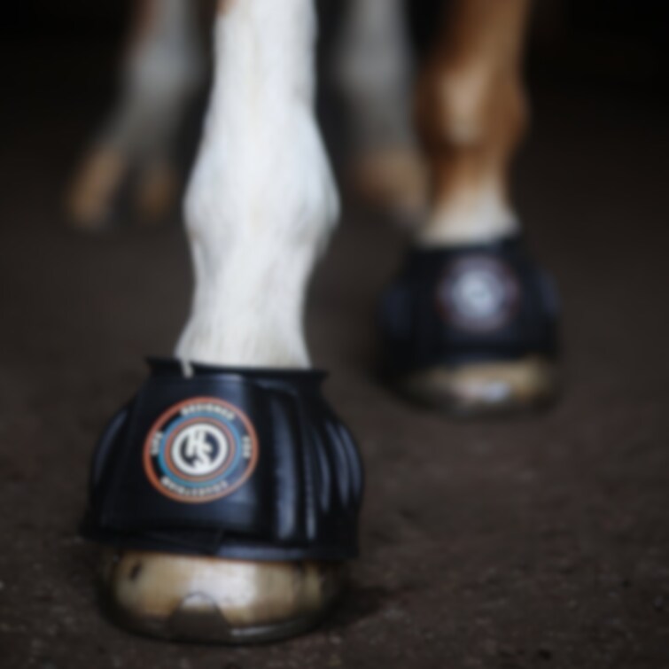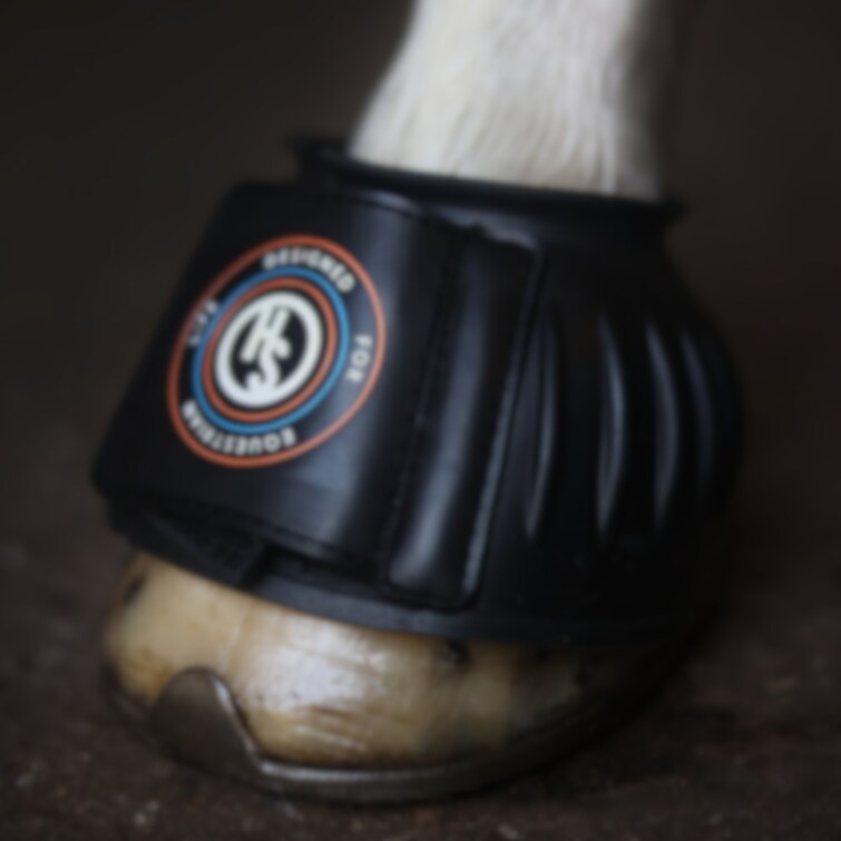 Klassiska gummiboots i modern tappning med HS – logga som försluts med kraftig kardborre.Skyddar mot slag och balltramp. Perfekta för både hagen och hoppbanan, enkla att spola rent. Säljes i par.