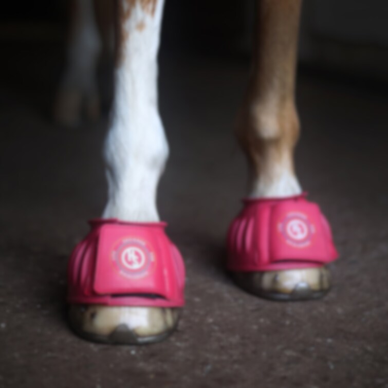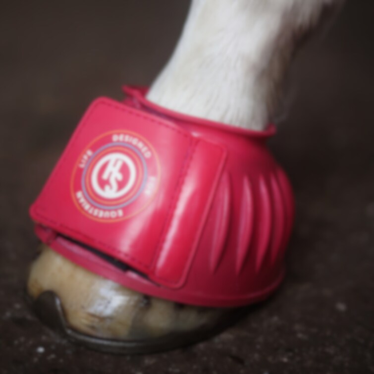 Klassiska gummiboots i modern tappning med HS – logga som försluts med kraftig kardborre.Skyddar mot slag och balltramp. Perfekta för både hagen och hoppbanan, enkla att spola rent. Säljes i par