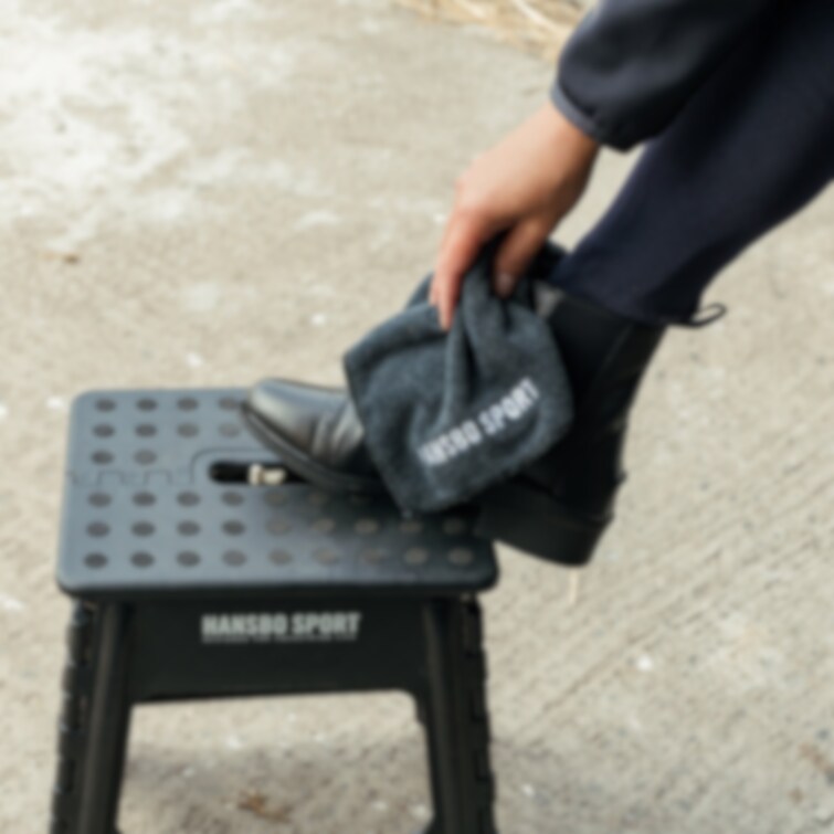 Svart putshandduk i microfiber som kan användas på hästen, vid persedelvård eller vid den sista putsen av stövlarna på tävlingsplatsen. Den går även bra att använda för att putsa upp en blank ridhjälm. Pustduken har måtten 35x34 cm, är detaljerad med broderad Hansbo Sport logga och en praktisk liten ögla för upphängning.