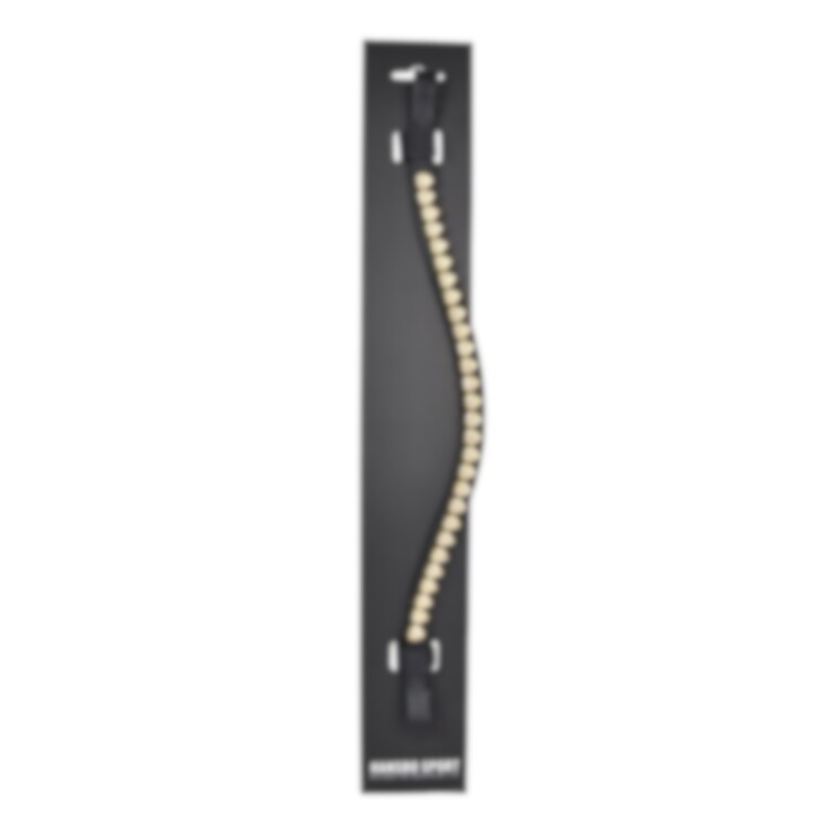 Ett elegant pannband i svart läder med dekorativa hjärtan som ger tränset ett personligt och stilfullt uttryck. Pannbandet är utformat för att sitta bekvämt över hästens panna och är enkelt att montera på de flesta träns, vilket gör det till ett perfekt tillbehör för både vardagsträning och tävlingsbruk.