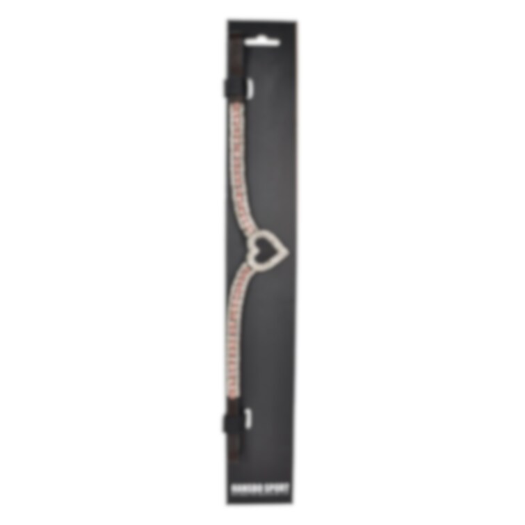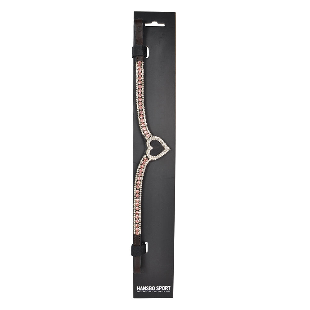 Ett elegant pannband i brunt läder som ger ditt träns en fin och söt detalj. Pannbandet är dekorerat med ett glittrigt rosa hjärta som skapar ett mjukt och personligt uttryck utan att ta över helhetsintrycket. Det passar lika bra till vardagsträning som till tävling där du vill ge utrustningen en genomtänkt och smakfull finish.
