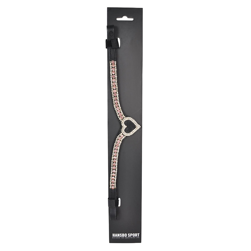 Ett elegant pannband i svart läder som ger ditt träns en fin och söt detalj. Pannbandet är dekorerat med ett glittrigt rosa hjärta som skapar ett mjukt och personligt uttryck utan att ta över helhetsintrycket. Det passar lika bra till vardagsträning som till tävling där du vill ge utrustningen en genomtänkt och smakfull finish.