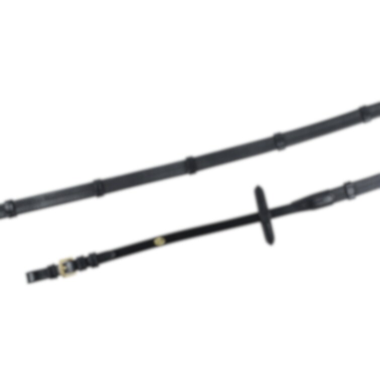 HS HELIX Gummityglar med stopp. Nylonkärna för att förhindra att tyglarna töjer sig. Finns i svart & brunt med mässingsfärgade spännen.Rengör och smörj gärna in efter användning för ökad livslängd på lädret.