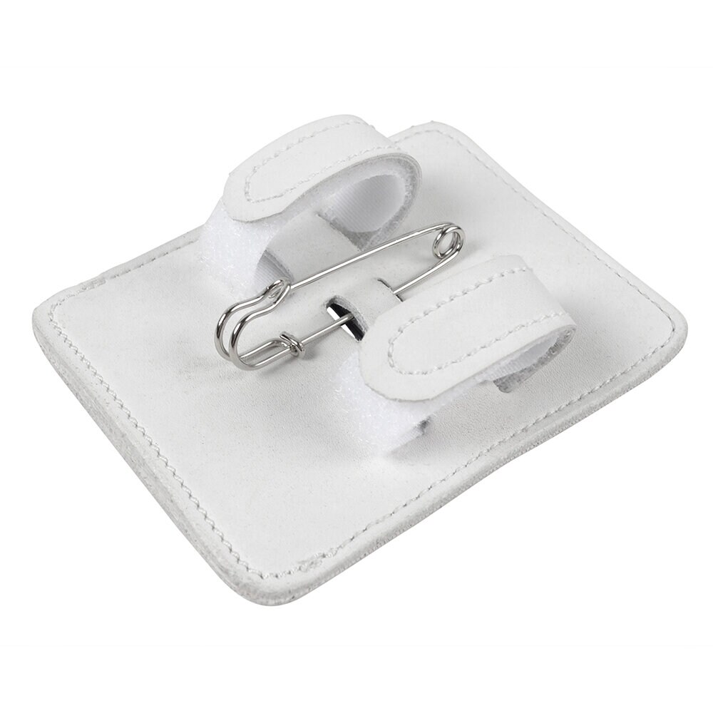 Vit rektangulär nummerlapp / tävlingsnummer tillverkad av veganskt läder. Kan fästas både på ett träns, på sadeln eller på schabraket. Säljes komplett med utbytbara siffror 1-9, som är lätta att byta.