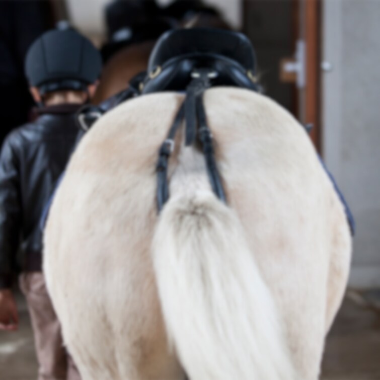Svanskappa i svart läder som förhindrar att sadeln glider framåt.