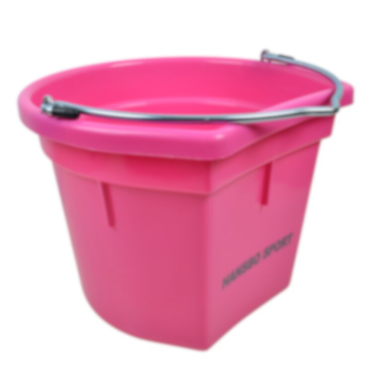 Rosa hink med flat sida och gradering. Hinken klarar klarar kyla ner till -20 grader.