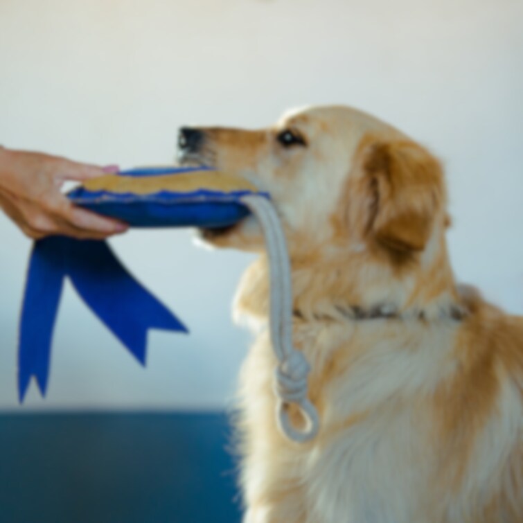 Leksak/gosedjur till häst. Blå/Gul prisrosett tillverkad av mocka och fylld med Kokosnötsfiber. Optimal för hästar som lätt blir rastlösa i boxen, då denna kan hjälpa till att sysselsätta hästen och motverka tristess. Enkel att hänga upp. Perfekta hederspris till tävlingar!